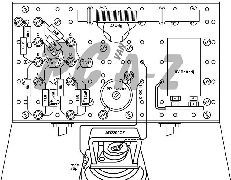 Er kan afgestemd worden met de originele variabele condensator of met een potmeter.